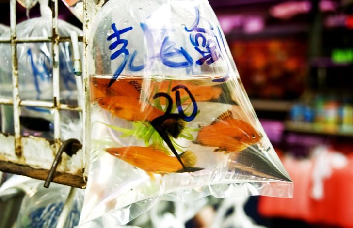 По мнению китайцев, золотые рыбки приносят счастье и благополучие, поэтому их обязательно нужно иметь у себя дома. В одном из районов Гонконга можно отыскать огромный рынок, где продаются тысячи рыбок всевозможных расцветок и размеров. Найти здесь можно и черепах, и крокодилов, и любую другую экзотическую водоплавающую живность, которую вряд ли можно встретить даже в зоопарках и океанариумах.