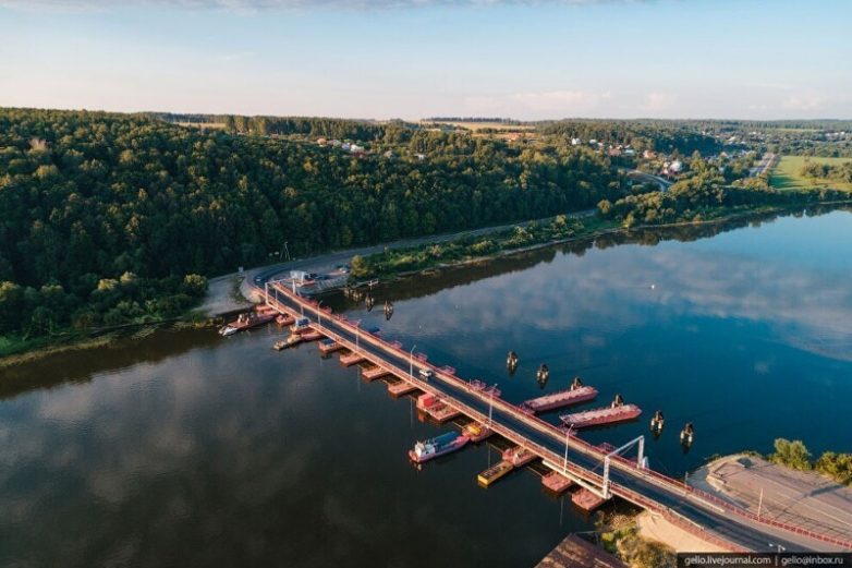 Уникальный разводной понтонный мост через Оку в Озёрах. Движение по нему закрывают, если уровень воды в реке увеличивается.