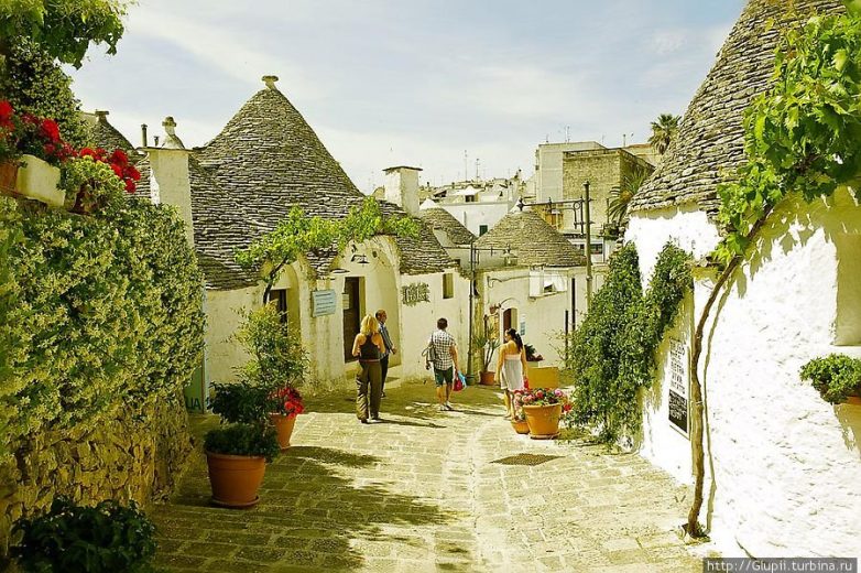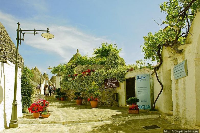 В настоящее время многие «трулло» отданы под сувенирные лавки, но во многих до сих пор живут местные жители, которые часто предлагают зайти внутрь, посмотреть на старинную утварь или подняться на крышу, чтобы увидеть панораму сказочного Альберобелло. (Фото Glupii):