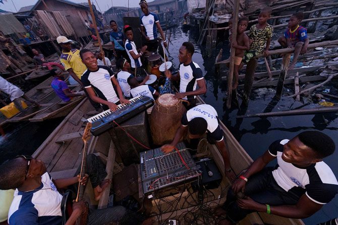 Несмотря на беднейший и совсем непростой образ жизни, жители Макоко всегда с удовольствием наслаждаются живой нигерийской музыкой. В любое время можно увидеть музыкантов, проплывающих по лагуне под заводные африканские ритмы.