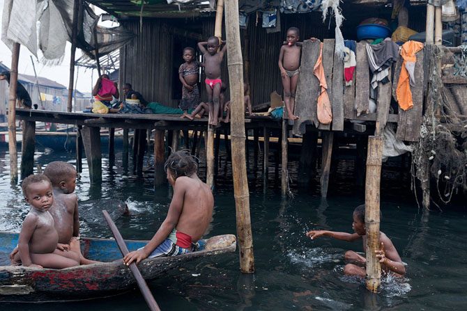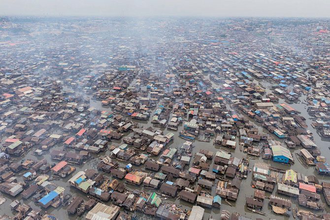 В центре Лагоса расположены одни из самых бедных трущоб Нигерии – район Макоко, где проживают в среднем 150,000 человек, чьи ветхие домики на сваях возвышаются на несколько метров от мутных зловонных вод одноимённой лагуны Лагос.