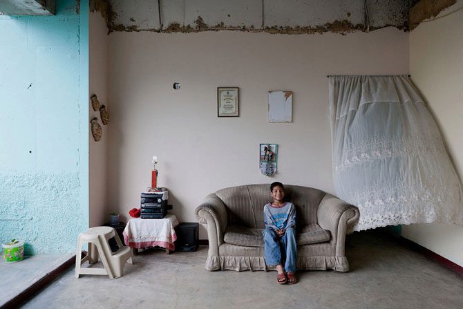 Как только не упражняются в изобретательности местные жильцы: любые материалы, которые можно приобрести или найти, идут в дело. Например, эта семья использует газеты в качестве обоев для перегородок своего маленького уголка.