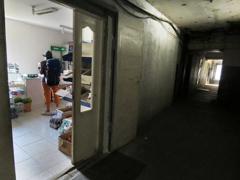 С другой стороны в коридоре нашлось место даже для магазина. Состояние всего этого ужасное, но хотя бы из скверных запахов — лишь ржавчина и плесень: