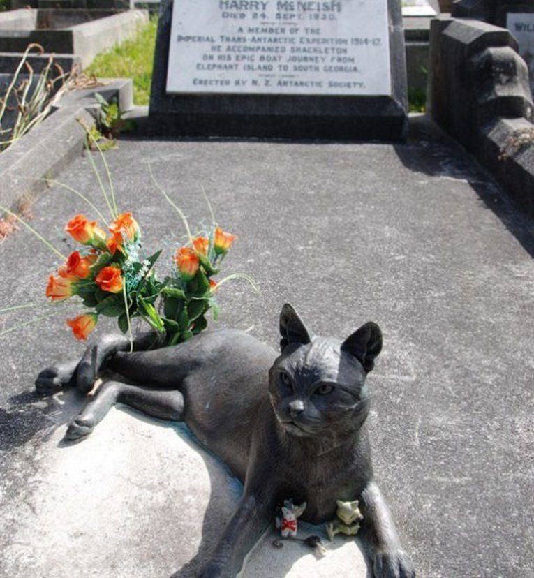Статуя лежащего кота установлена на могиле его умершего в 2004 году хозяина Гарри Макниша (Harry McNeish), который был плотником в арктической экспедиции Эрнеста Шеклтона в 1914-1917 г.г. Своё женское имя кот получил из-за того, что изначально его приняли за кошку.