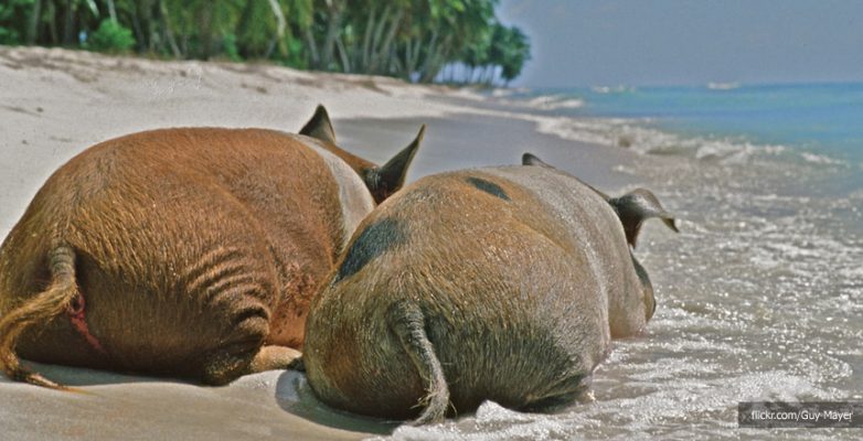 Они с удовольствием принимают солнечные ванны на пляже, кувыркаются в песке и устраивают групповые заплывы. Туристов, приезжающих сюда на яхтах и катерах, смешные поросята встречают радостным хрюканьем и не упускают возможности выпросить какое-нибудь лакомство. Говорят, что за спелый банан свиньи с удовольствием позируют для памятных фото.