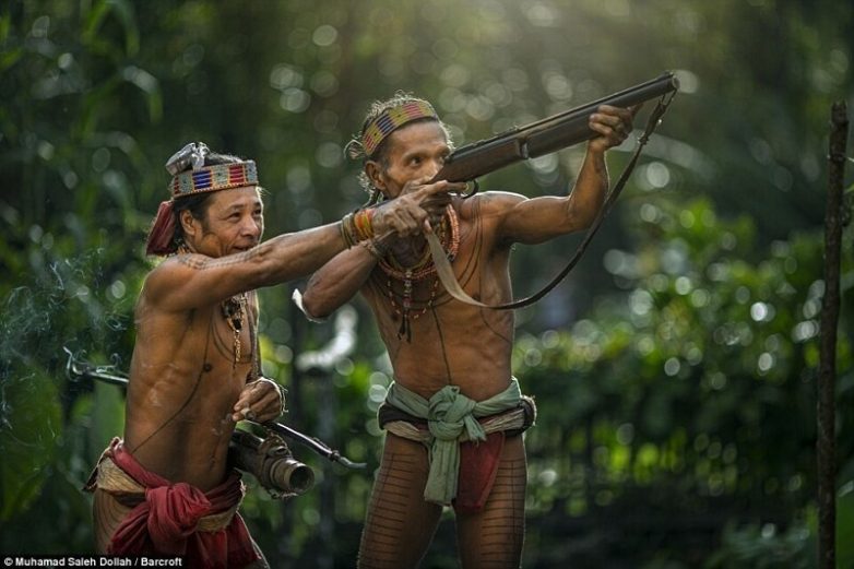 Мужчины коренного народа Индонезии ментавайцев на охоте. Численность народа составляет около 64 тысяч человек.