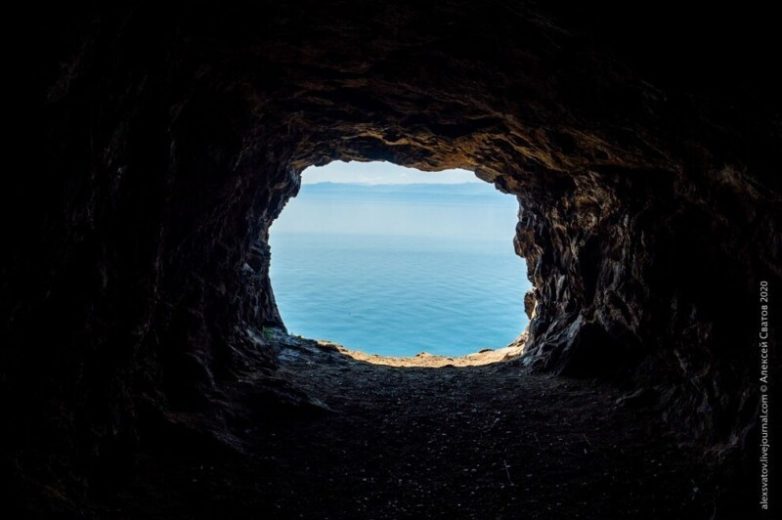 Вот и тот самый туннель у мыса Колокольный, с нерпами. В некоторых туннелях есть шахты, перпендикулярно выходящие к Байкалу. Прокладывались они для сброса породы и для вентиляции. Если выйти в такую шахту в этом туннеле, то можно увидеть лежбище нерп ближе.