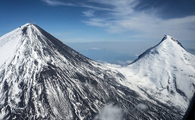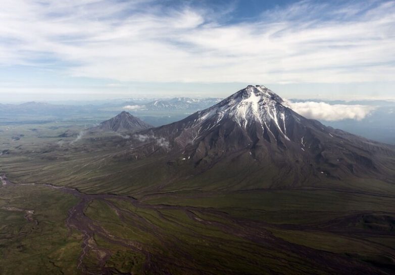 Вулканы Ключевская сопка — самый высокий вулкан в России (слева) и Камень