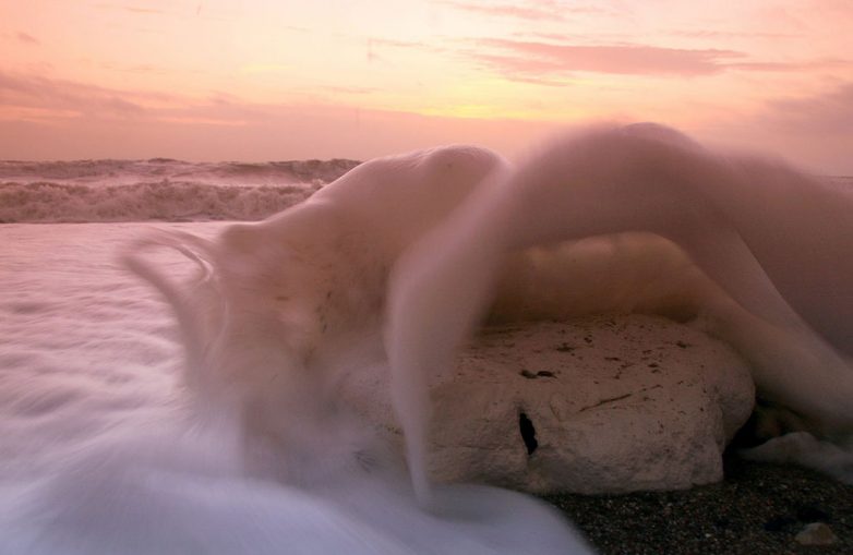 Эти скалы выглядят действительно очень необычно. Глядя со стороны, кажется, что над пляжем плывет огромный белоснежный занавес.
