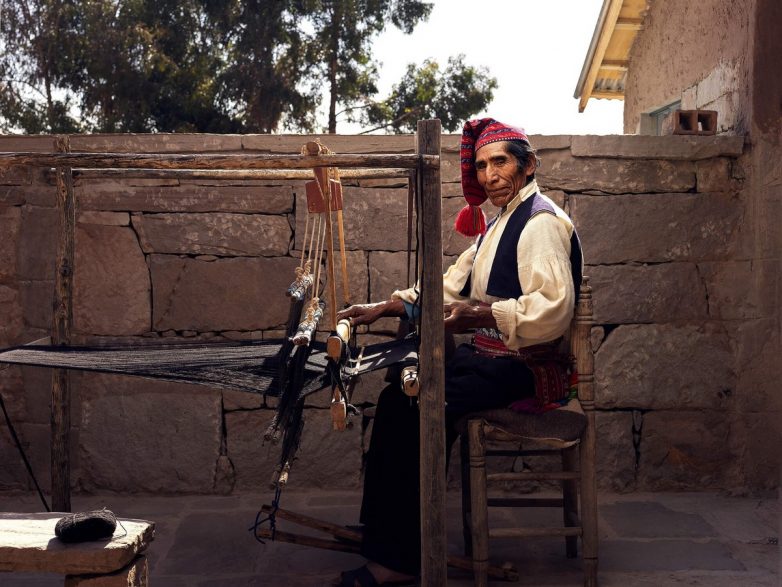 Алехандро Флёрес, которому 66 лет, — известный музыкант и ткач с перуанского острова Такиле. Родители Алехандро еще в детстве научили его работать на ткацком станке. Эта ремесленная традиция сохранилась на высоте 4200 м над уровнем моря, на озере Титикака, и передавалась из поколения в поколение.