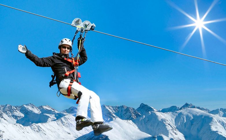 Самая необычная канатная дорога в мире функционирует на швейцарском курорте Хох-Ибриг. Для того чтобы прокатиться на ней, не нужно садиться в кабинку и держать наготове фотоаппарат — надо надеть шлем и пристегнуться ремнями безопасности. Дело в том, что по подвесной дороге Sternensauser пассажиры движутся под тяжестью собственного тела. Канатка представляет собой кабель, натянутый между несколькими платформами на высоте 75 м над землей. Кстати, именно Sternensauser является самой длинной кабельной дорогой подобного типа в мире.