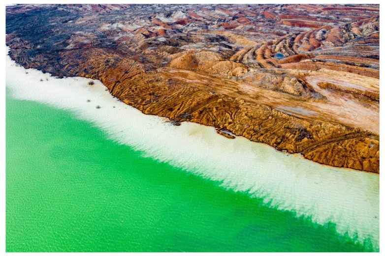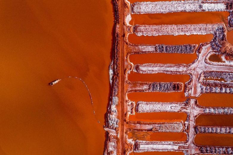 С точки зрения промышленности отвал алюминиевой руды — гора мусора. Под ногами она выглядит некрасиво: обычная серая грязь. Но если снимать отвал с дрона, он смотрится живописно, главное — выбрать правильную высоту. Я стараюсь отсекать ненужный контекст, чтобы в кадр не попадала техника, железная дорога, люди. Так в фотографии появляется что-то космическое.