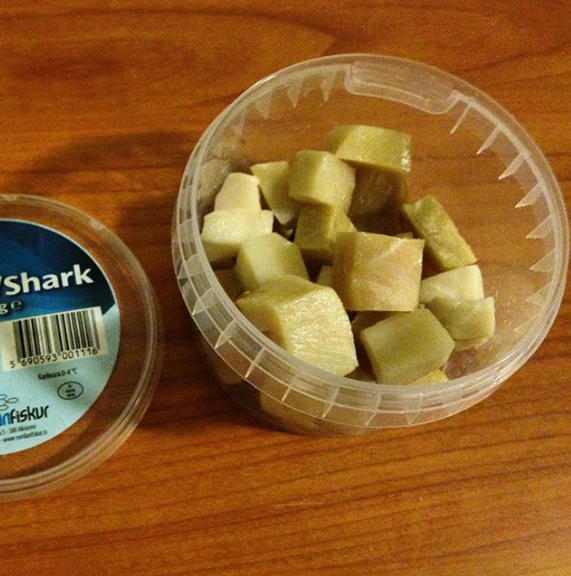 «Хаукарль — исландское блюдо: вяленое мясо акулы, у которой нет почек. Она ходит в туалет через кожу, поэтому ее мясо даже после обработки пахнет»