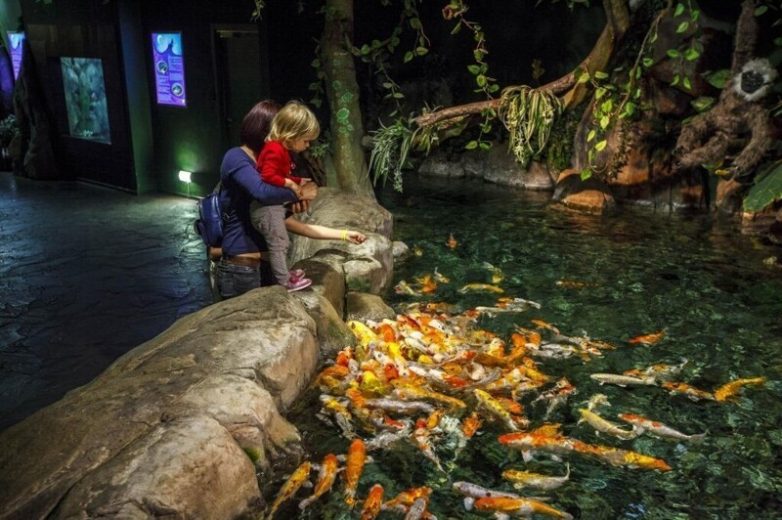 Каждый день в прозрачном тоннеле на забаву зрителям кормят акул. Аквариумы разделены на несколько тематических зон. В океанариуме обитают не только рыбы, но и черепахи, акулы, мурены. Есть небольшие открытые пруды, где можно покормить рыб кормом, который продается в автоматах рядом.