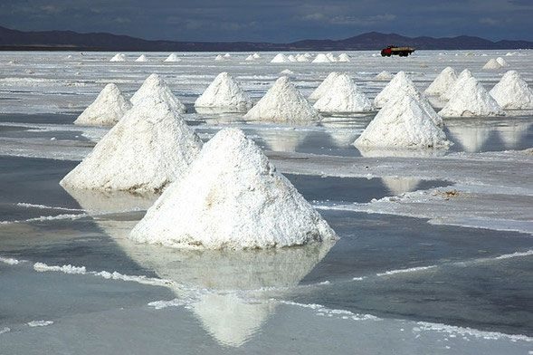 Солончак Уюни, самое большое в мире соляное озеро, расположено в юго-западной Боливии. Соленая пустыня, окруженная кактусами, вулканами и гейзерами, выглядит как будто это не Земля, а далекая планета.