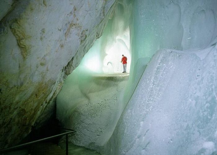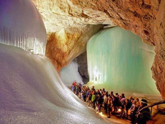 Ледяная пещера Eisriesenwelt. Самая большая ледяная пещера в мире расположена в 40 км к югу от Зальцбурга. Протяжённость её тоннелей и залов составляет 42 км. Замёрзшие водопады, ручьи, речки, сталактиты и сталагмиты представляют собой фантастическую картину. Пещера была создана рекой Зальцах, протекавшей сквозь пустоты горных пород.