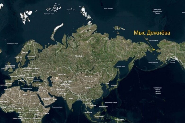 Расстояние от мыса Дежнёва до Москвы по прямой — 6300 км.