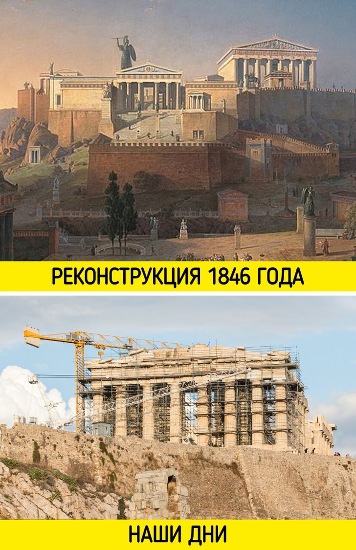 Древнегреческий храм, памятник античной архитектуры, был построен в честь богини Афины в 447−438 годах до н. э. Сейчас сложно точно сказать, как выглядел Парфенон раньше, но в 1846 году немецкий архитектор нарисовал, что, по его мнению, представлял из себя Акрополь в свои лучшие годы. Увы, в 1687 году, во время осады Акрополя, в храм выстрелили из пушки, а из-за того, что тогда он служил складом оружия, взрыв получился особенно сильным и принес колоссальный урон сооружению. Сегодня Парфенон находится в полуразрушенном состоянии, но там ведутся восстановительные работы.