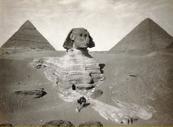 Большой сфинкс был построен примерно в 2500 году до н. э. Немногим известно, что еще 150 лет назад этот величественный монумент был закопанным в песке больше чем наполовину. Откопали сфинкса в 1925 году, а в 2014 году он подвергся длительной реставрации и стал доступен для туристов.