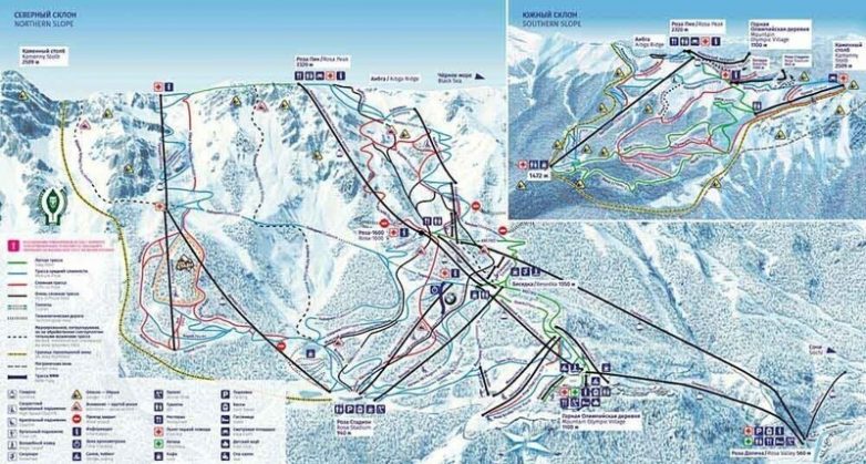 Каждый курорт имеет официальный сайт, отдельный прокат лыж, свои подъёмники и скипас. Первое, что понадобится лыжникам на курорте Красная Поляна – схема трасс и подъёмников, а также карта склонов.