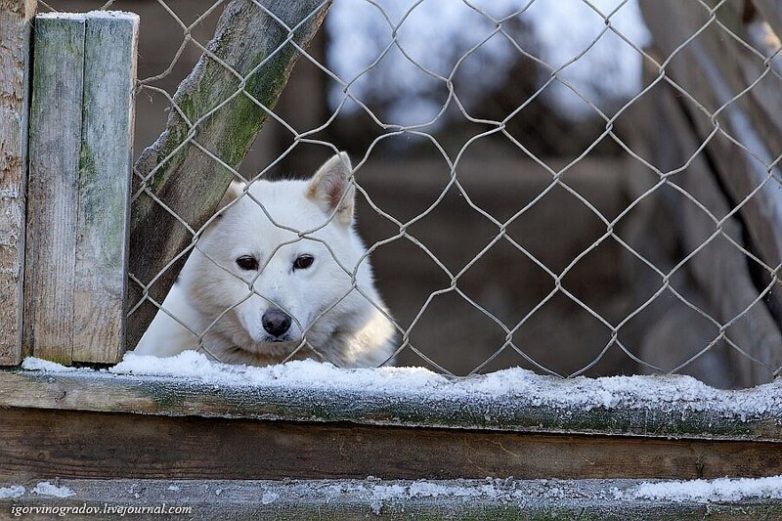 Вот так их учат, привязывая на цепь, быть послушными в упряжке: