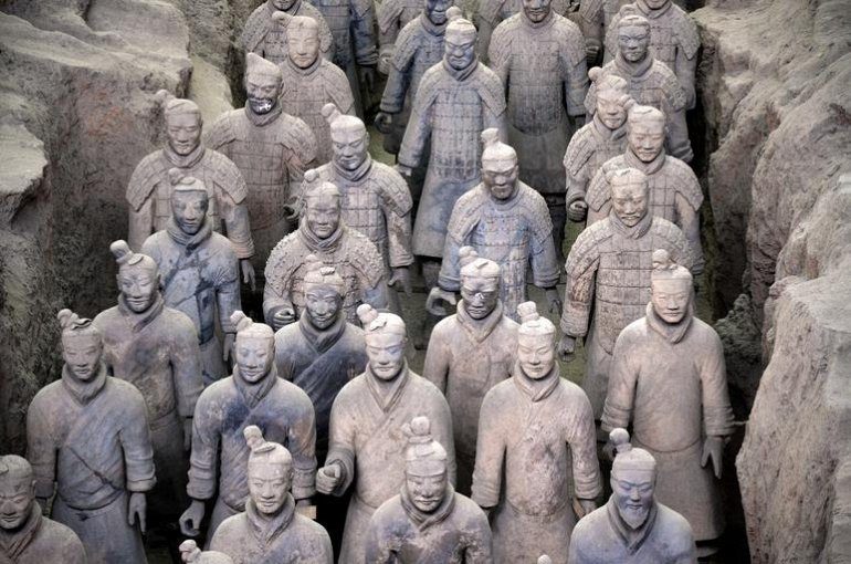 Для гробницы первого китайского императора Цинь Шихуана художники создали тысячи терракотовых статуй солдат, лошадей и колесниц в натуральную величину, чтобы сопровождать его в загробную жизнь. В 1974 году рабочие за пределами города Сиань в провинции Шэньси обнаружили некоторые из этих памятников III века до н. э. при попытке выкопать колодец. С тех пор избранная группа этих статуй появилась в музеях по всему миру.