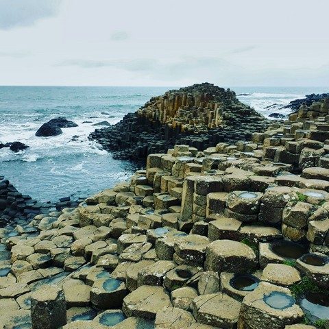 Более 40 000 взаимосвязанных базальтовых колонн образуют мостовую Гигантов в трех километрах от Бушмиллса в графстве Антрим в Северной Ирландии. Верхушки колонн образовались в результате извержения древнего вулкана и выступают, словно ступеньки, от скал к морю. Самая высокая ступенька возвышается на 12 метров, и большинство из них имеют шестиугольную форму.
