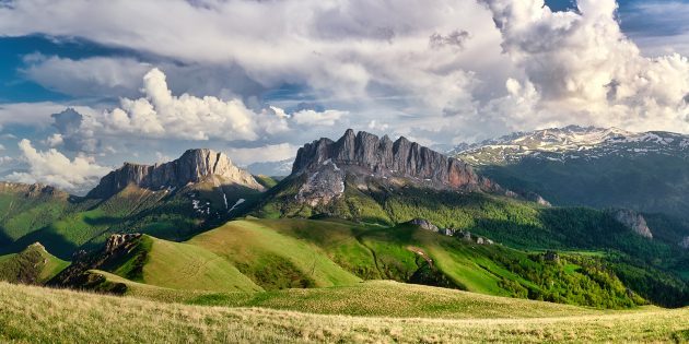 Эльбрус — это самая большая гора России и Европы. 5 642 метра над уровнем моря! Эльбрус воспет поэтами и прославлен альпинистами. Если для вас восхождение — слишком рискованный и трудный шаг, приезжайте хотя бы просто посмотреть на этого великана.