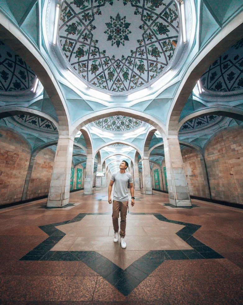 На одной из фото запечатлена станция метро имени Алишера Навои в Ташкенте.