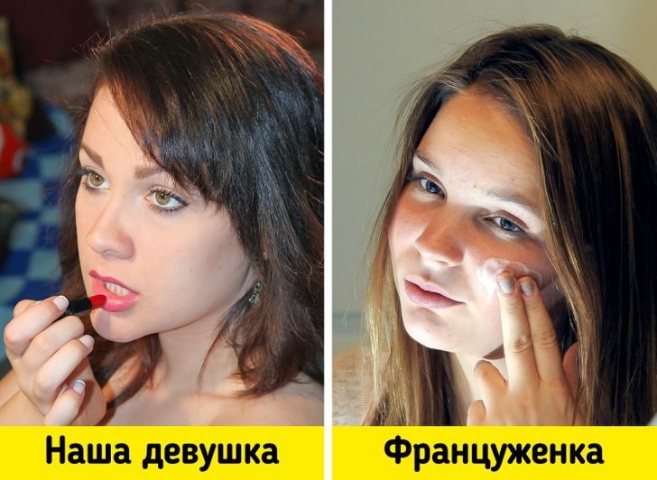 Французские женщины редко красятся в повседневной жизни. Более того, они больше склонны покупать много косметики для ухода, а не декоративной. И если у нас можно часто встретить девушку, поправляющую макияж в метро, то во Франции вы скорее увидите пассажирку, которая в общественном транспорте наносит на лицо увлажняющий крем.
