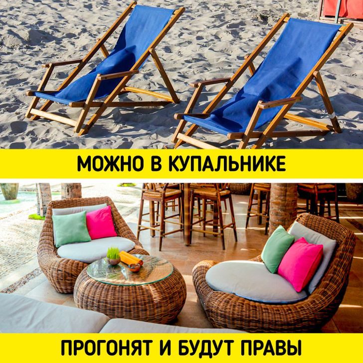 Отдельный разговор о кафе и ресторанах, которые находятся на побережье. Вроде бы в них не зазорно зайти в купальнике. Но увы, пляжная одежда может оставить мокрые пятна и следы песка на стульях и подушках, и после вас уже вряд ли кто-то захочет сесть на это место.