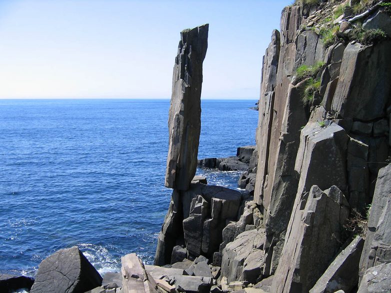 Эта скала, кажется, бросает вызов силе тяжести, так как расположена на самом краю небольшого постамента. Колонна высотой в 9 метров состоит из двух секций, грозно нависая над бушующим океаном