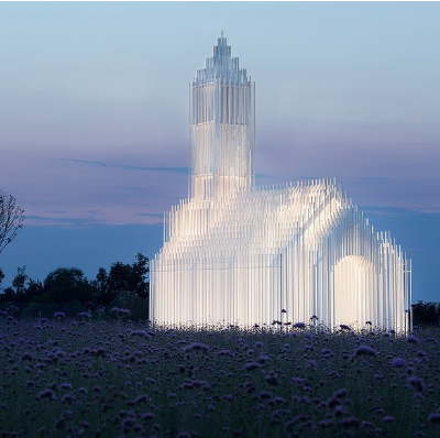 Никакого фотошопа — это воздушное сооружение было создано в рамках налаживания дипломатических отношений между Францией и Китаем и олицетворяет взаимопроникновение двух культур. Церковь построена из алюминиевых стержней разного сечения и высоты, расположенных так, чтобы игра солнечного света делала здание эфемерным и почти прозрачным.