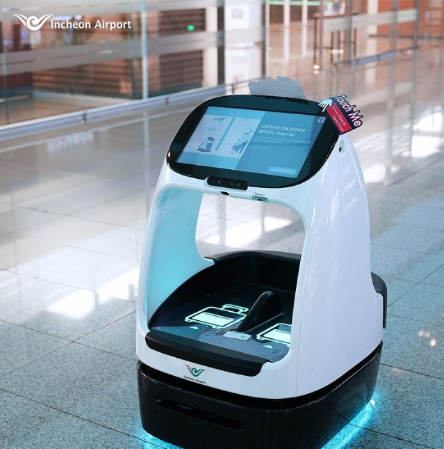 В воздушной гавани Инчхон ручную кладь пассажиров доставит робот. Достаточно лишь отсканировать посадочный талон. Устройство вычислит номер рейса и выхода на посадку, после чего поможет налегке добраться до пункта назначения.