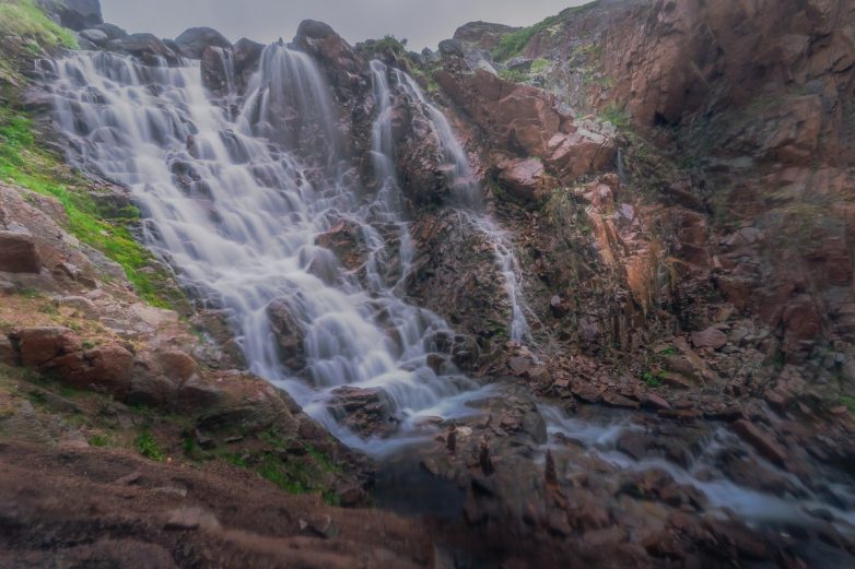 Водопад находится на реке Рисйок, что в переводе с саамского означает «Березовая река». Действительно, по берегам горной речки растут невысокие березки. Несмотря на свое название, водопад находится на речке, вода в которой не является родниковой. Она питается ручьями, вытекающими из штолен объектов, на которых были произведены два ядерных взрыва.