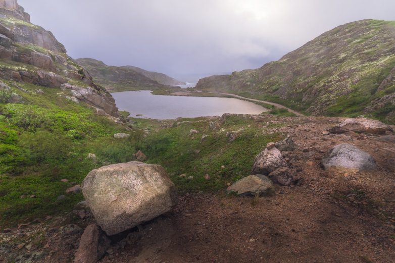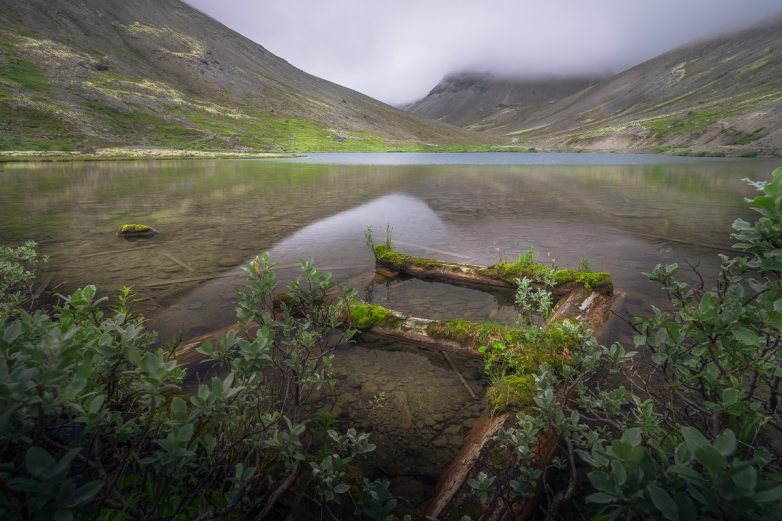 На следующее утро мы посетили кладбище кораблей и направились вглубь Кольского, в Ловозеро. В негласной столице саамов тоже шел дождь уже несколько дней. Местные нам настоятельно рекомендовали отказаться от похода к Сейдозеру из-за плохой погоды. Но мы решили попробовать дойти хотя бы до перевала Эльморайок и сделать пару снимков. От идеи сфотографировать Куйву пришлось отказаться сразу, а Сейдозеро оказалось полностью закрыто туманом. Саамы в таких случаях говорят: «Куйва не пустил!»