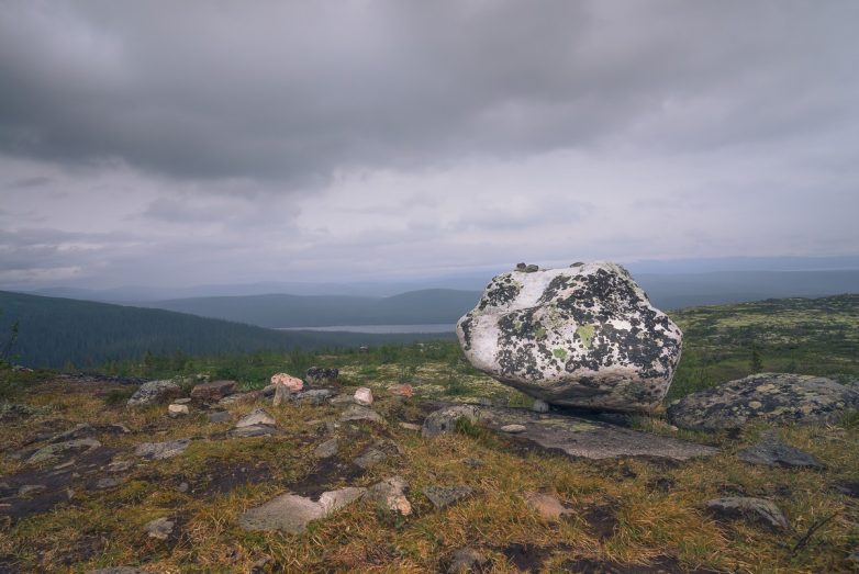 Из Хибин мы отправились в Лапландский заповедник. Когда мы поднялись на вершину Ельнюн II, нашим взорам открылись бескрайние просторы горной тундры и озер. На горе расположен сейд — священный камень саамов. Согласно верованиям саамов, в сейды вселялись духи, благодаря чему камни оживали. О них сохранилось много сказок и преданий.