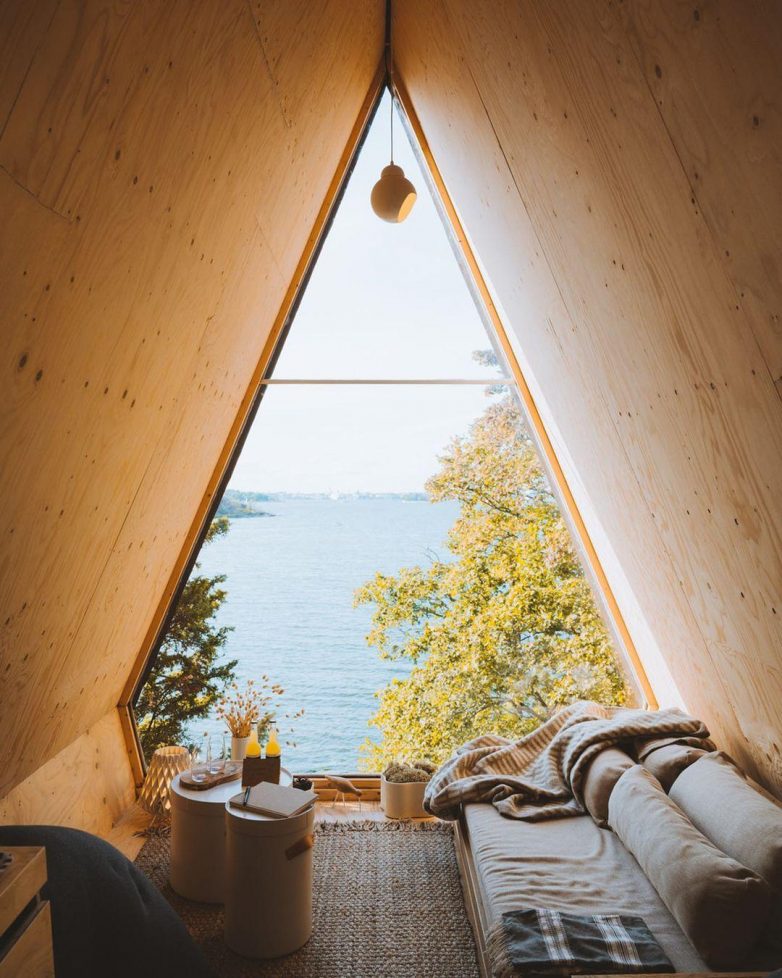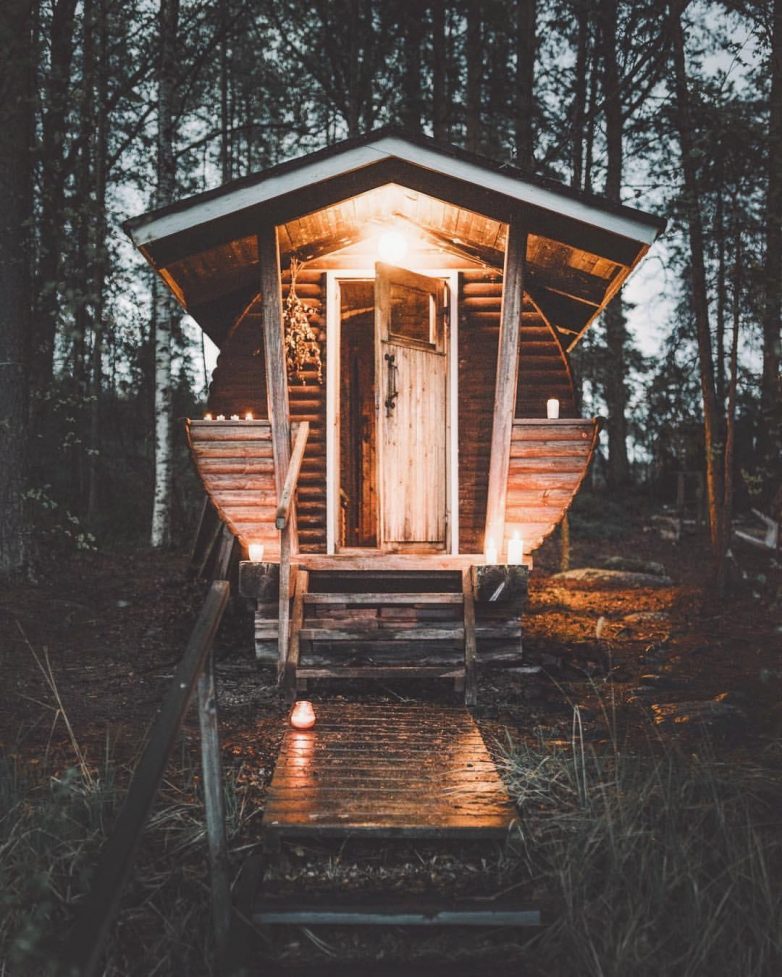 Да, если вы думаете, что речь идет о каких-то далеких краях, куда только на оленях и добираться, то это не так. В «Инстаграме» Йоонаса есть серия фотографий, которые рассказывают об уютной хижине (или как обычно ее называют cabin), которая находится в 20 минутах езды от Хельсинки! Найти ее можно на острове Валлисаари. Это проект дизайнера Робина Фалька — жилище в минималистичном стиле, называется оно Nolla (ноль — отсылка к холодам страны). Площадь хижины составляет всего девять квадратных метров, но здесь есть кровати, небольшая кухонная плита, работающая на биотопливе, и солнечная батарея на крыше, которая дает великолепные отражения. Такая хижина — отличное место для «просмотра кино» за окном: благодаря четкой выраженности финских сезонов можно насладиться каждой порой года. А на горизонте, кстати, виден сам город Хельсинки. Это одно из любимых мест Йоонаса.