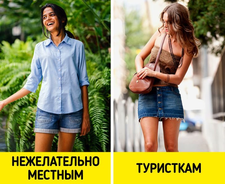 Джинсы, шорты и короткие юбки на индианках можно увидеть только в крупных городах. Это нежелательные предметы гардероба, ведь они оголяют ноги. В некоторых учреждениях (например, в колледжах) девушкам официально нельзя носить джинсы и шорты, а кое-где это правило распространяется и на туристок. Несколько лет назад в Кашмире для иностранных путешественниц даже хотели издать дресс-код, который не рекомендовал носить мини. Однако запретить носить ту или иную одежду, особенно иностранцам, невозможно. И все же, собираясь в эту страну, стоит учитывать ее особенности и менталитет жителей.