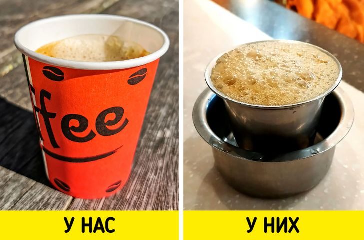 Большинство индийцев предпочитает пить чай. Вместо привычного кофе жители Индии готовят фильтрованный, или каапи. Он сильно отличается от кофе в западном понимании: кофейный порошок заливают вспененным молоком в специальном металлическом фильтре.