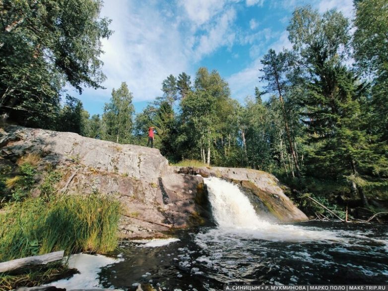 Каскад равнинных водопадов с кольцевой эко-тропой на 1,5 км (30 минут — 1 час). Ничего особенно тут нет — равнинные водопады не поражают воображение. Просто легкий маршрут по лесу и над водопадами. Народ заезжает по пути в горный парк «Рускеала». Инфраструктура: парковка, туалеты, указатели, сувениры и ларьки с едой.Карельский зоопарк