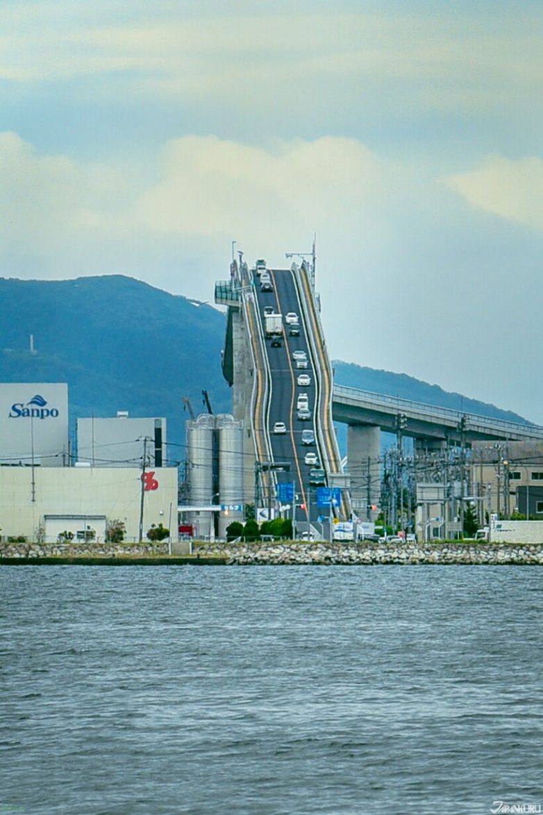 Внешне мост выглядит настолько крутым, что некоторые называют его американскими горками, но на самом деле угол наклона со стороны города Сакаиминато составляет всего 2,9°, а из Мацуэ автомобили преодолевают отметку в 3,5°.