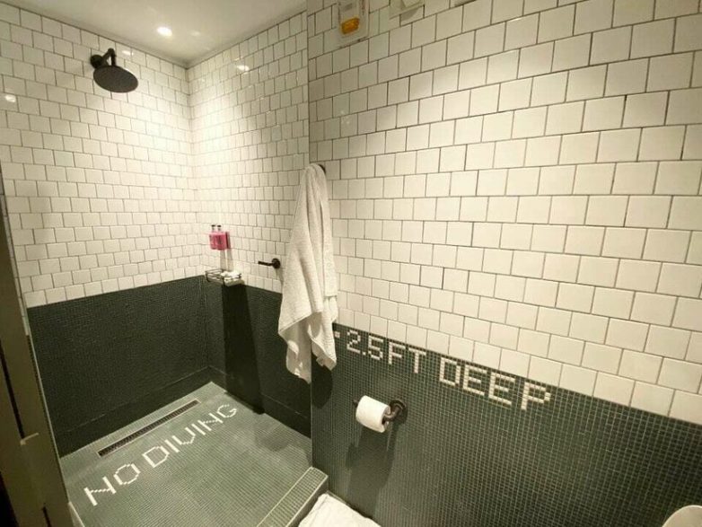 Душевая комната, оформленная в стиле бассейна