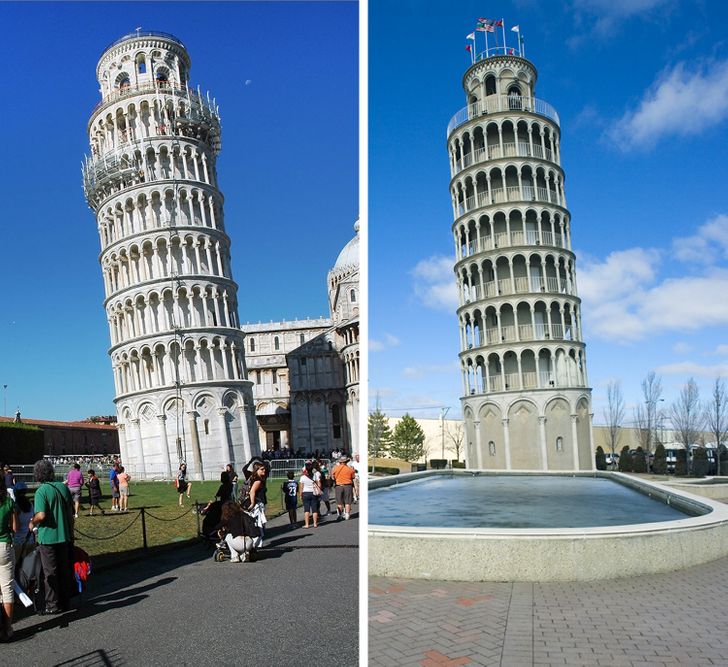 Вряд ли найдется человек, который хоть раз бы не слышал о Пизанской башне — колокольне с характерным наклоном. Огромное количество туристов приезжает сюда, чтобы сделать фотографию на ее фоне. Стоимость входного билета составляет € 18. Однако мало кто знает, что в США есть наполовину уменьшенная копия итальянской «легенды». Здание находится в городе Найлс, штат Иллинойс. Построено оно было в 1934 году Робертом Ильгом как часть парка отдыха для сотрудников его компании.
