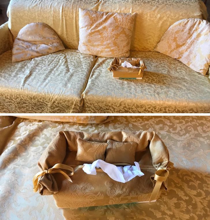 Маленькая коробочка для салфеток выглядит так же, как и софа