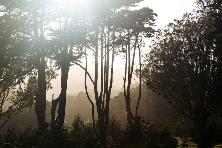 По направлению за музеем раскинулся большой парк, спустившись по его холмам мы выехали прямо к мосту «Золотые ворота». Чудесный вечерний свет…