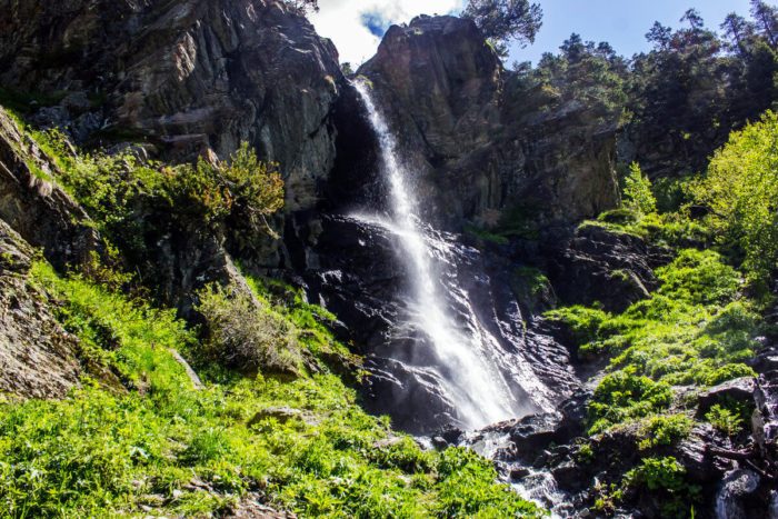 Одно из самых живописных и доступных мест близ Архыза. Полноводный водопад расположен в пешей доступности от поляны Тауле в месте слияния реки Белая и реки Псыш. Поток воды после падения течет по узкому каньону Айюлю-Чат и представляет собой потрясающее зрелище. Тропа к водопаду ведет через лес с вековыми соснами и мимо полян с цветущими крокусами. Наиболее эффектно водопад выглядит в период с апреля по декабрь.
