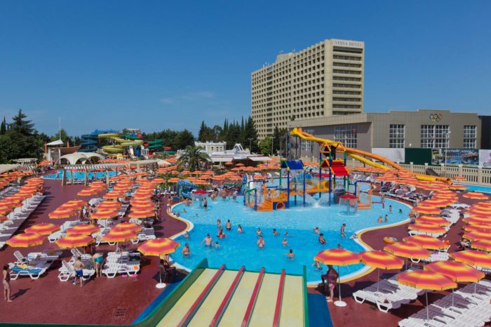 Аквапарки и дельфинарии традиционно самые популярные места, куда можно сходить с детьми. Есть в Адлерском районе еще питомник обезьян и ферма страусов, которые тоже понравятся детям.Аквапарк «Амфибиус»