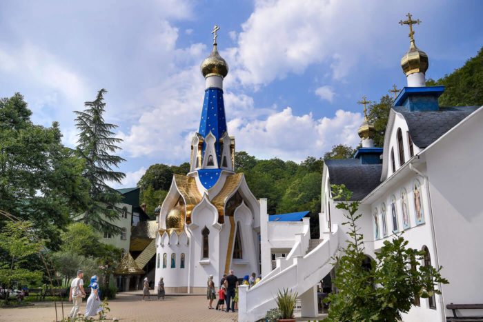 Кафедральный собор апостольской Армянской церкви построен в 1993 году недалеко от реки Мзымта. Он имеет архитектуру традиционную для культовых сооружений в неоармянском стиле. Проект храмового комплекса выполнил Ованес Задикян. Он объединил классические храмовые черты с современными формами. Собор построен из блоков песочного цвета, интересный вид ему придают треугольные окна. Вечером включается подсветка.