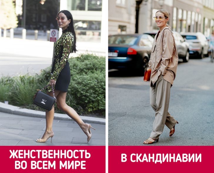 Обувь на низком каблуке или вообще без него. Женщины в скандинавских странах в повседневной жизни носят удобную обувь, в которой можно без проблем пройтись пешком, проехаться на велосипеде или догнать автобус — кроссовки, балетки, ботинки. На улицах Копенгагена или Осло вы практически не увидите девушек на каблуках, если только они не собираются на вечеринку.